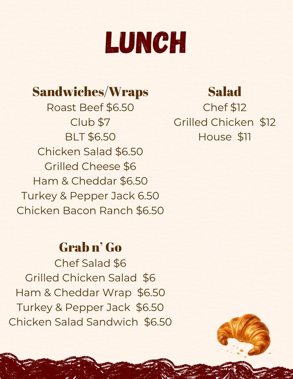 Join us for lunch from 11am β 1pm and enjoy juicy burgers alongside our usual salads and sandwiches. Each burger comes with chips and your choice of iced tea or a drink from the Coke fridge.